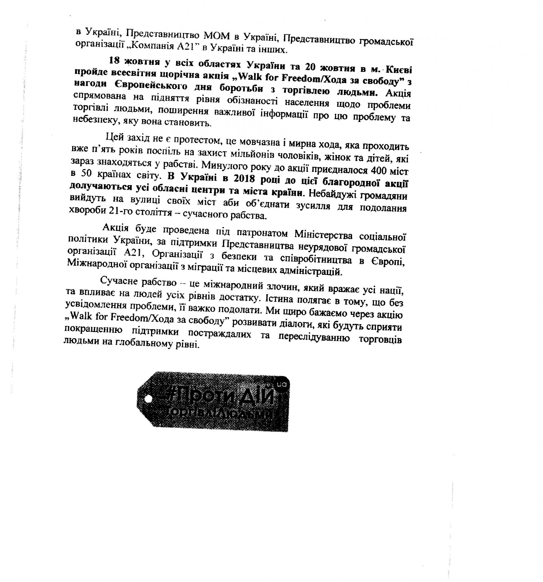18 жовтня - Європейський день боротьби з торгівлею людьми